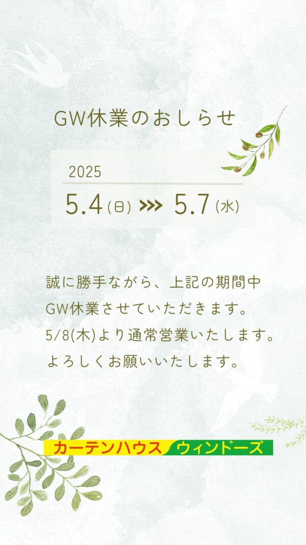 5/4(日)~5/7(水) 休業とさせていただきます。