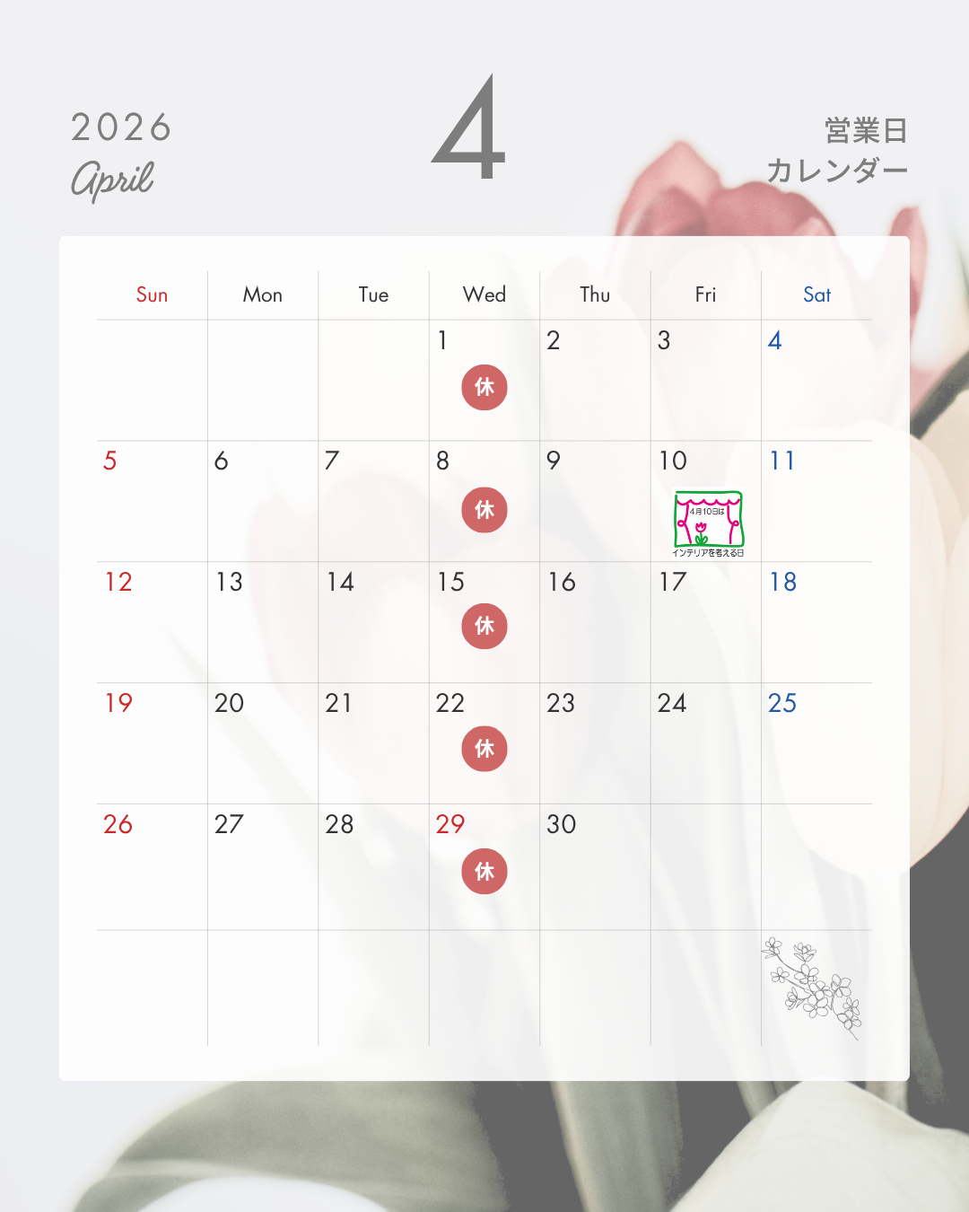 📅 4月の営業日カレンダー