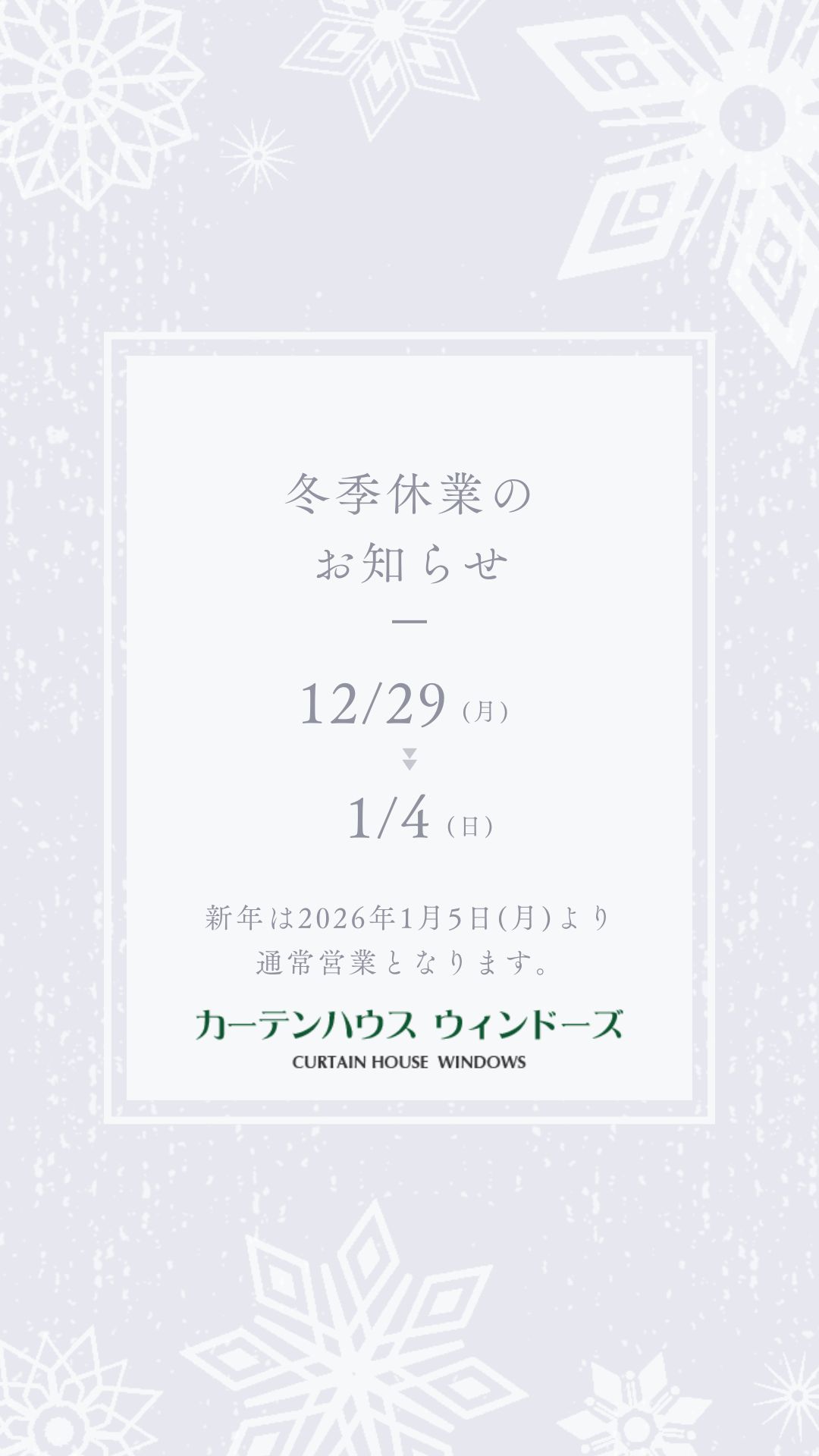 - 冬季休業のお知らせ