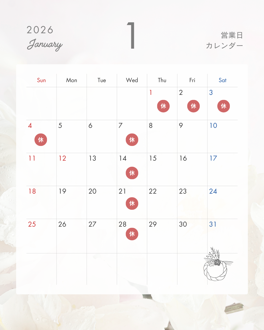 - 📅 1月営業日のお知らせ📅